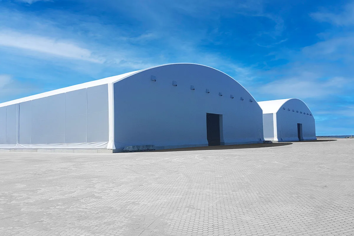 Lagertält med torrluftsystem är en idealisk och energisnål lösning för lagring av fuktkänsligt material. Tältets täta konstruktion gör det möjligt att effektivt kontrollera den inre miljön genom avfuktning utan behov av värmeisolering eller uppvärmning. Torrluftlagret är en smart och kostnadseffektiv lagerlösning som säkerställer hög kvalitet på era varor.