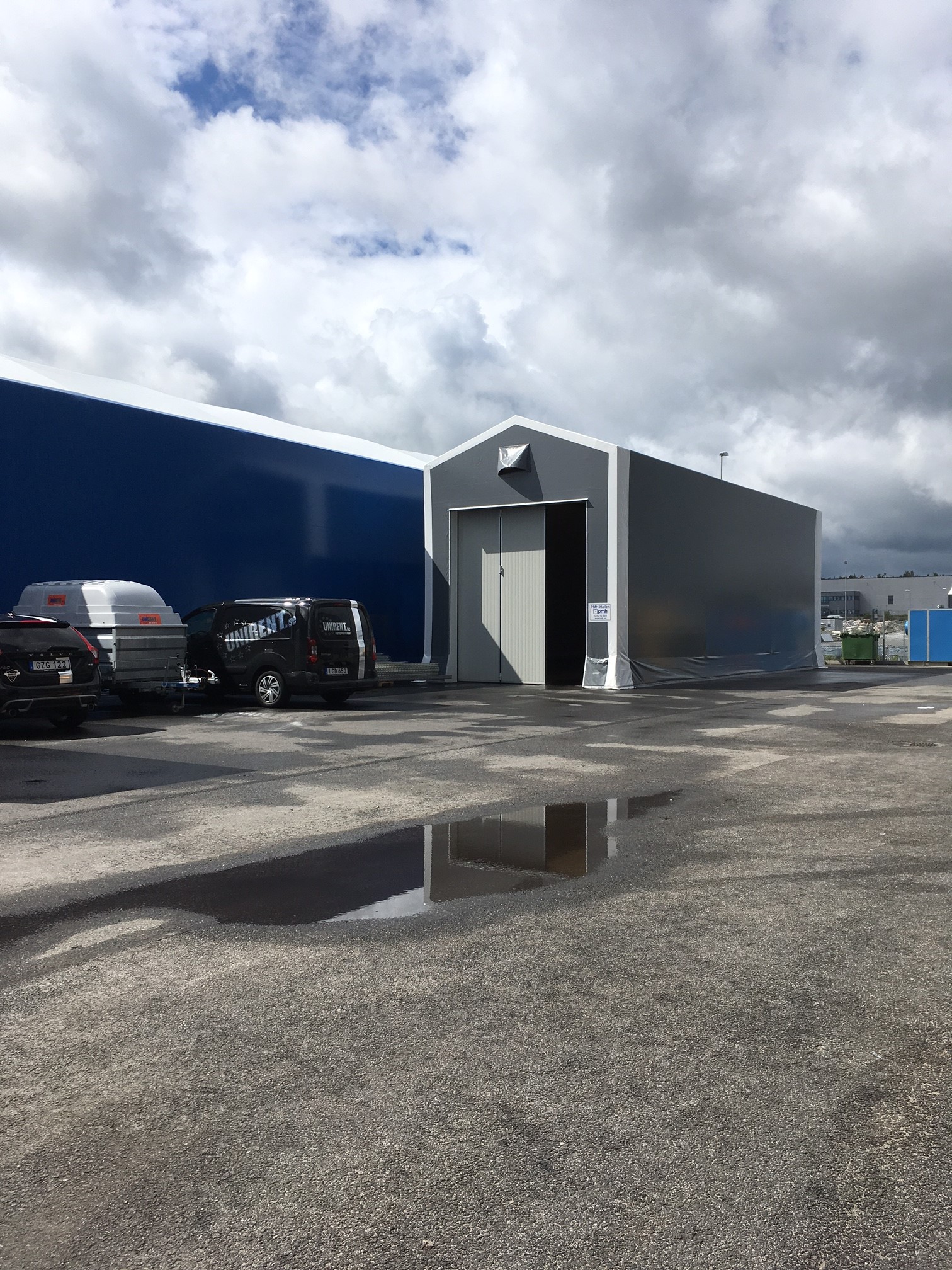 Plasthallar blir oftast en blickpunkt från vägen eller på det område där den står uppställd. Att då välja färg eller sammansättning av färger på duken samt överlappskapporna, som väl passar in på omgivningen, är en naturlig del av projekteringen. PMH–Hallen lämpar sig väl för att visa företagets profil. PMH Plåthall som är plåthall levereras med profilerad, lackerad stålplåt i valfri standardfärg. För korrekt färgåtergivning översänder vi gärna färgprover för duk och plåt. Det finns även möjlighet att välja färg på porten och gångdörrar för matchning av befintliga byggnader och omgivning