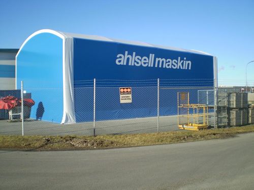 PMH-Hallen blir oftast en blickpunkt från vägen eller på det område där den står uppställd. Färger i kombination med en logotype på duken kommunicerar företagets profil. Det underlag som vi behöver för att lämna ett kostnads och utformningsförslag är en EPS-fil (vektoriserad) på er logga.